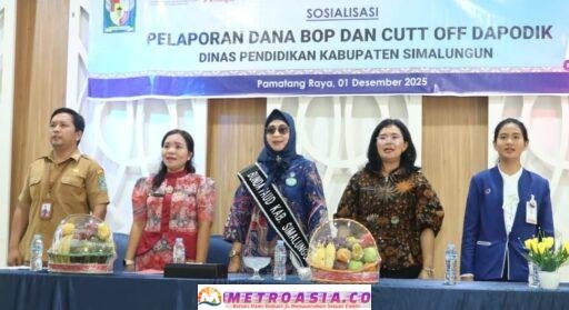 Pemerintah Kabupaten (Pemkab) Simalungun melalui Dinas Pendidikan menggelar kegiatan sosialisasi pelaporan dana Bantuan Operasional Pendidikan (BOSP) Cut Off Dapodik di Aula Tjohan Garingging, Simalungun City Hotel, Pamatang Raya, Sumatera Utara, Senin (1/12/2025).